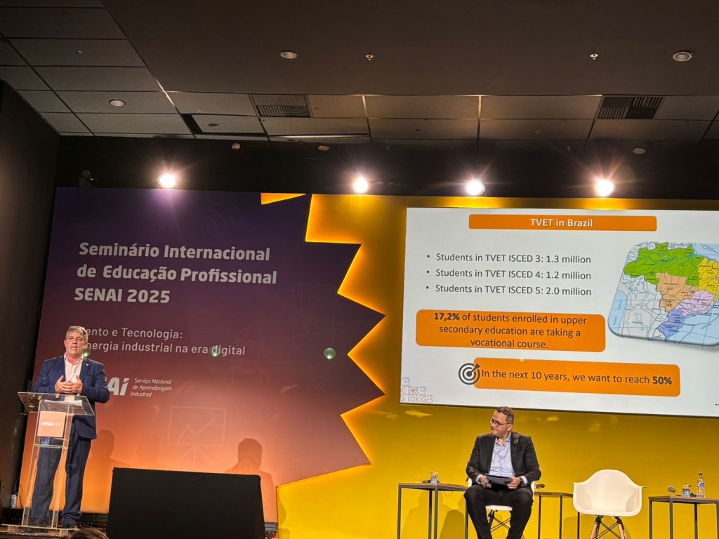 O Ministério da Educação (MEC) participou, nesta quinta-feira, 25 de setembro, em Brasília (DF), do Seminário Internacional de Educação Profissional Senai 2025, evento híbrido que
