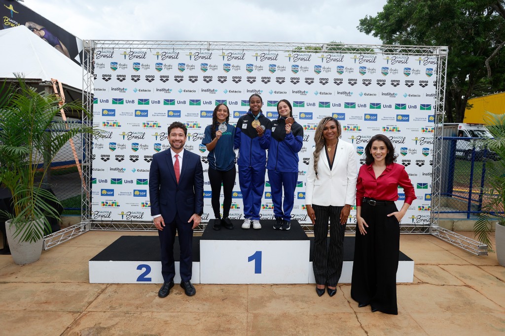 Os secretários de Alto Desempenho, Iziane Marques, e do Futebol, Patrick Correa, além da presidente da Autoridade Brasileira de Controle de Dopagem (ABCD), Adriana Taboza,