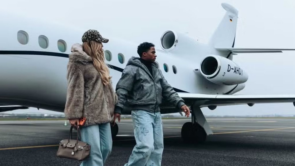 Endrick, de 19 anos, e a esposa, Gabriely Miranda, de 23, chegaram à França nesta sexta-feira (26) para iniciar uma nova etapa na carreira do