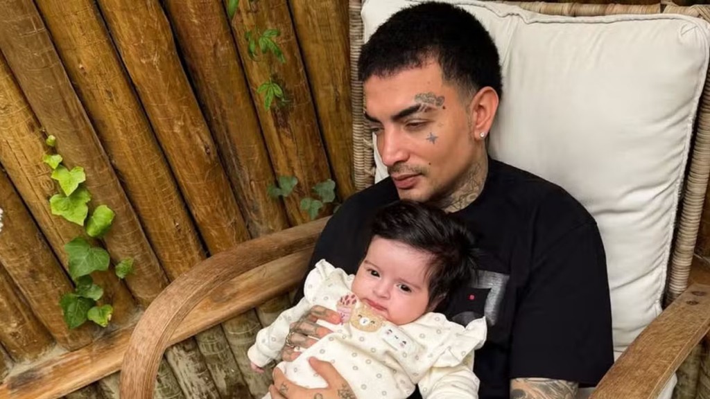 MC Guimê, de 32 anos, encantou os seguidores ao compartilhar neste domingo (29), um clique ao lado da filha Yarin, de 3 meses, nas redes