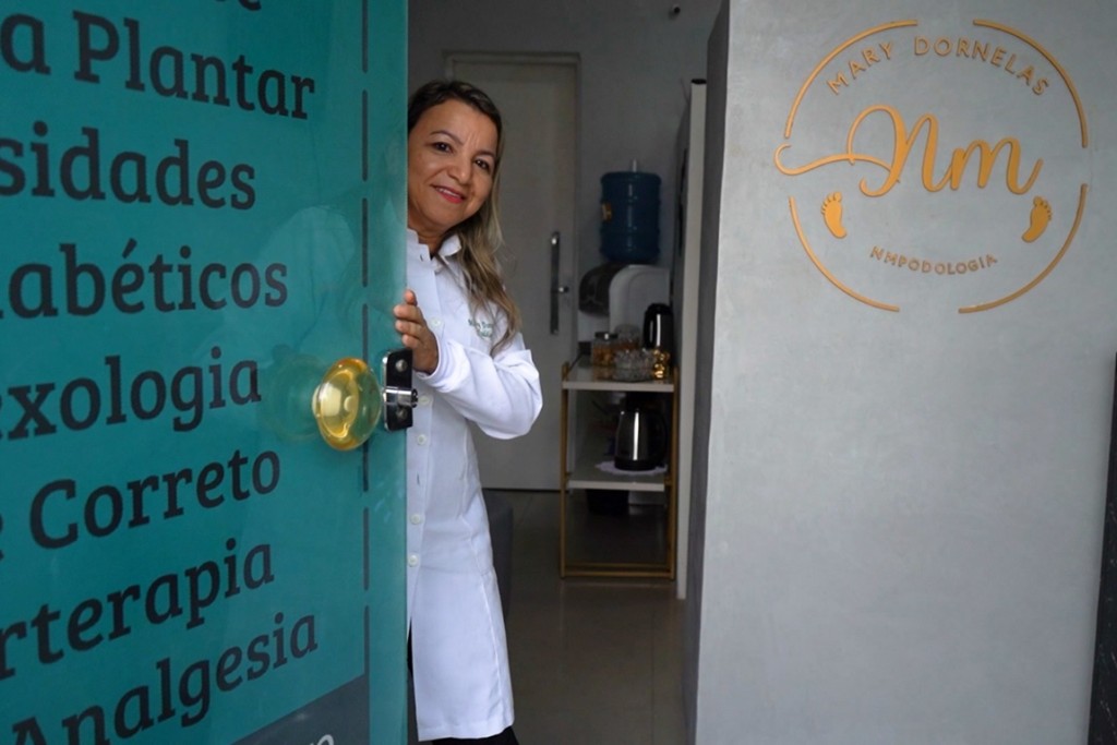 Nazaré Mary Dornelas, 53 anos, não sabia nada sobre podologia quando pegou um alicate para arrancar a unha encravada do marido, um trabalhador naval que sofria com dores crônicas. Seis anos depois, ela, que é mãe de três filhos, transformou um gesto de amor em profissão.