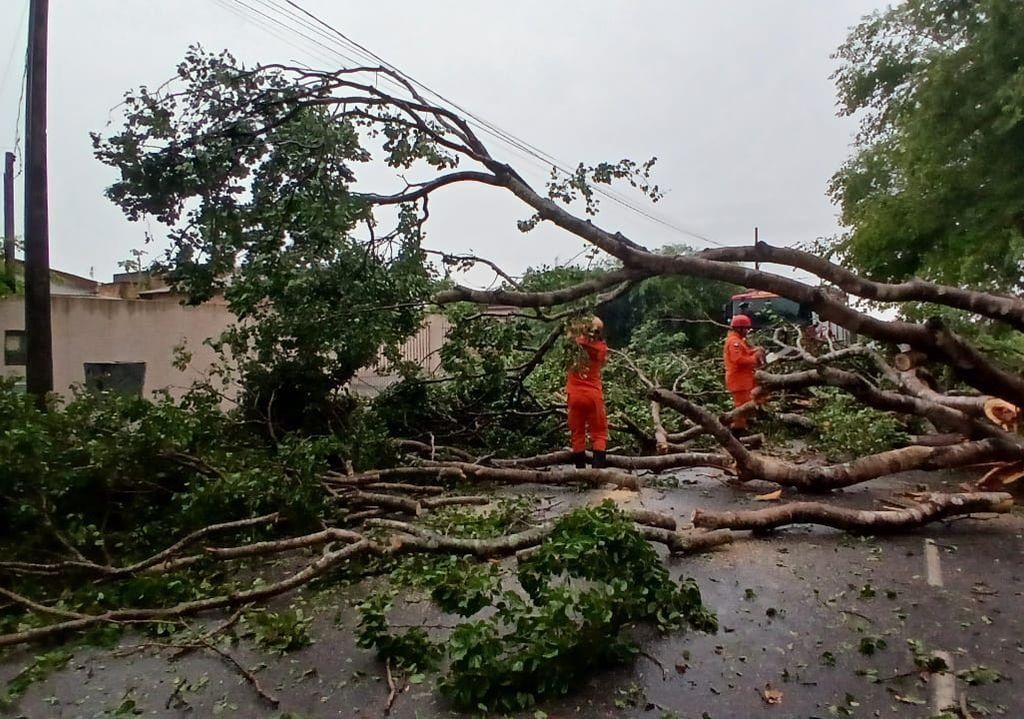 O Corpo de Bombeiros Militar de Mato Grosso (CBMMT) atuou, nesta segunda-feira (3.11), em três ocorrências de queda de árvores que foram registradas após uma chuva intensa com fortes ventos em Sinop (a 479 km de Cuiabá).
