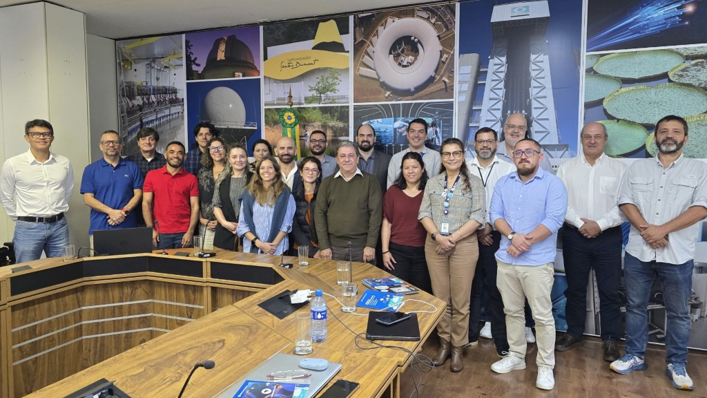 A foto foi registrada na sala do secretário de Justiça do Estado de Mato Grosso, Vitor Hugo Bruzulato Teixeira, com a presença dos demais participantes. O espaço é amplo e bem iluminado, com armário e mesa de trabalho bem distribuídos no ambiente. Na parede lateral, está exposto um mapa grande do Estado de Mato Grosso com delimitações em cores distintas.