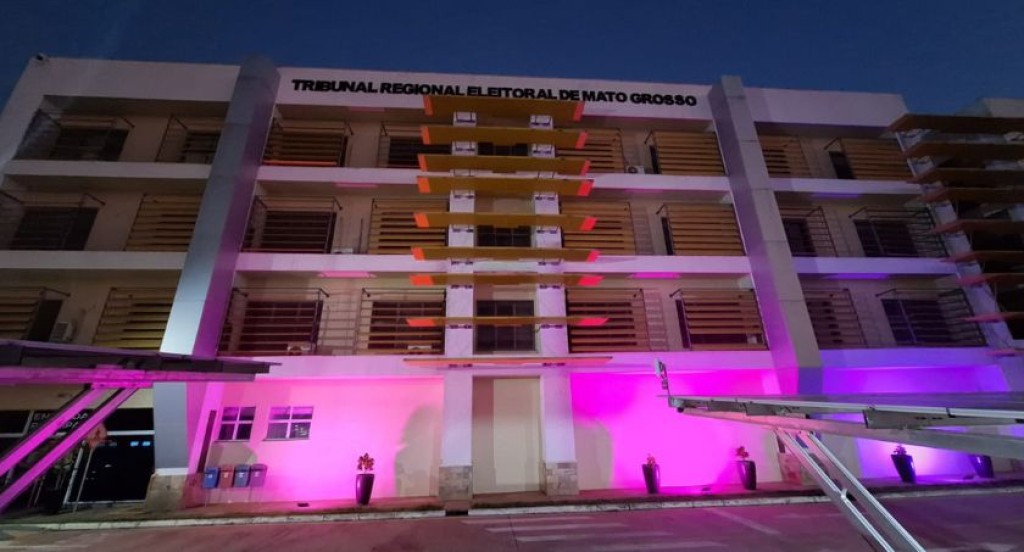 O edifício-sede do Tribunal Regional Eleitoral de Mato Grosso (TRE-MT), em Cuiabá, ganhou iluminação especial na cor rosa durante o mês de outubro. A ação simbólica integra as atividades de conscientização do movimento Outubro Rosa, campanha mundial de prevenção e diagnóstico precoce do câncer de mama.