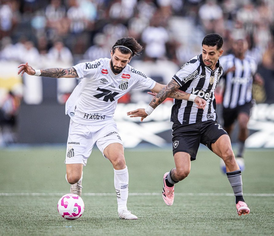 Apesar do golpe precoce, o Santos não se abalou e buscou se reorganizar. A equipe praiana intensificou a pressão na área adversária, e após algumas tentativas, um cruzamento pela direita de Igor Vinícius encontrou o caminho. Na tentativa de afastar, Newton acabou chutando a bola no pé de Souza, que comemorou o gol de empate, aproveitando o infortúnio do defensor botafoguense.