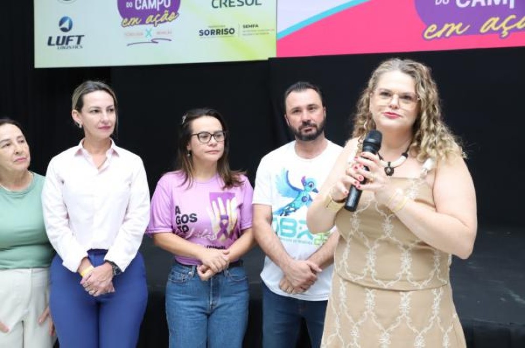 Um momento para celebrar as mulheres do campo, destacando suas experiências, dificuldades e conquistas. Esse foi o XII Fórum Regional Mulheres do Campo em Ação, realizado ontem, 27 de agosto, em Sorriso. Presente no evento, a primeira-dama e gestora da Secretaria da Mulher e da Família (Semfa), Mara Fernandes, destaca que o evento é uma ferramenta essencial na capacitação e fortalecimento da participação feminina no agronegócio, abordando temas de tecnologia e inovação. Para o vice-prefeito, Acácio Ambrosini, o encontro demonstrou “a força que vem do campo, com a história de mulheres que lutam, enfrentam as dificuldades e superam desafios diários”.