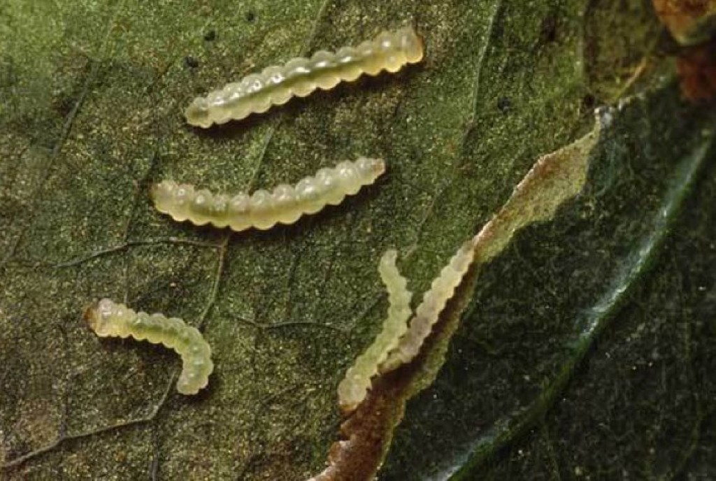 • “O inseto se instala nas folhas com comportamento ‘minador’: as fêmeas depositam ovos sobre a superfície foliar, as larvas eclodem e entram no mesofilo para se alimentar, causando injúrias e reduzindo a capacidade fotossintética das plantas”, explica.