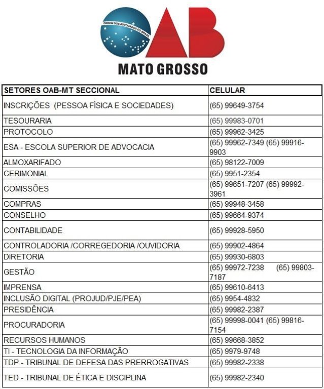 Confira aqui os números de celulares da OAB-MT: