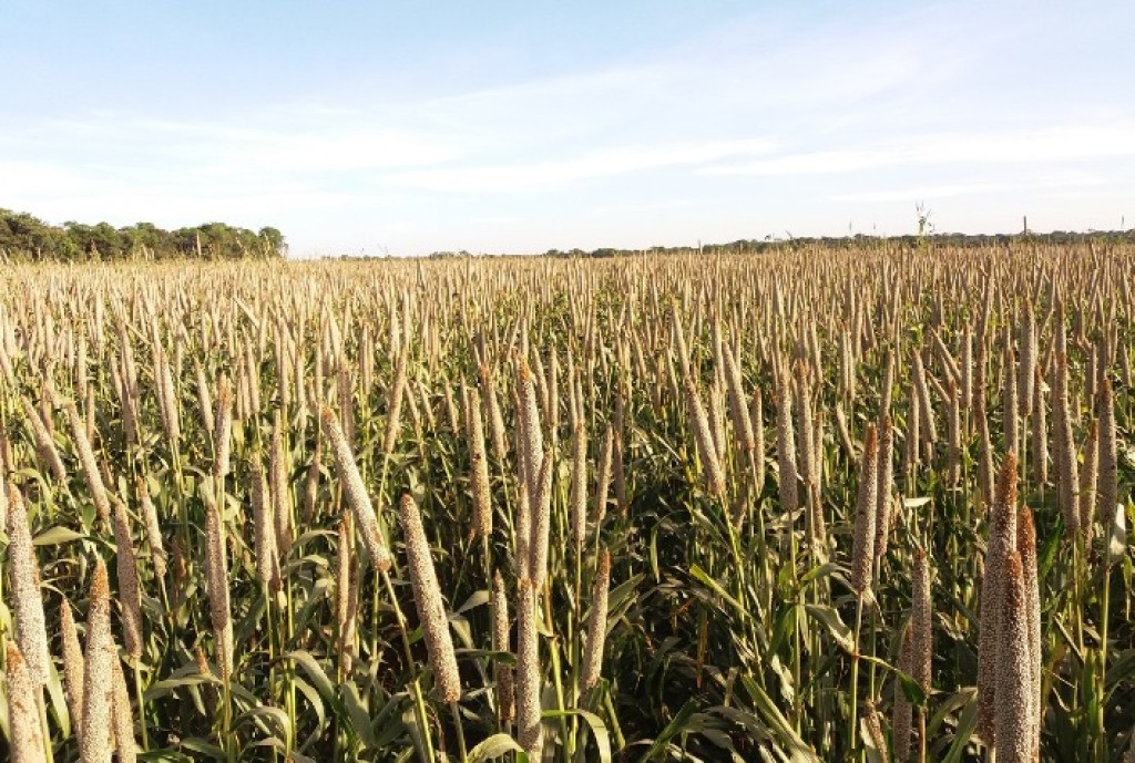 Com uma necessidade hídrica média de 300 mm por ciclo, o milheto se destaca pela resiliência em períodos de estiagem. Mesmo diante das falhas de chuva observadas em Goiás, Mato Grosso do Sul e oeste da Bahia, a cultura mantém produtividade estável.