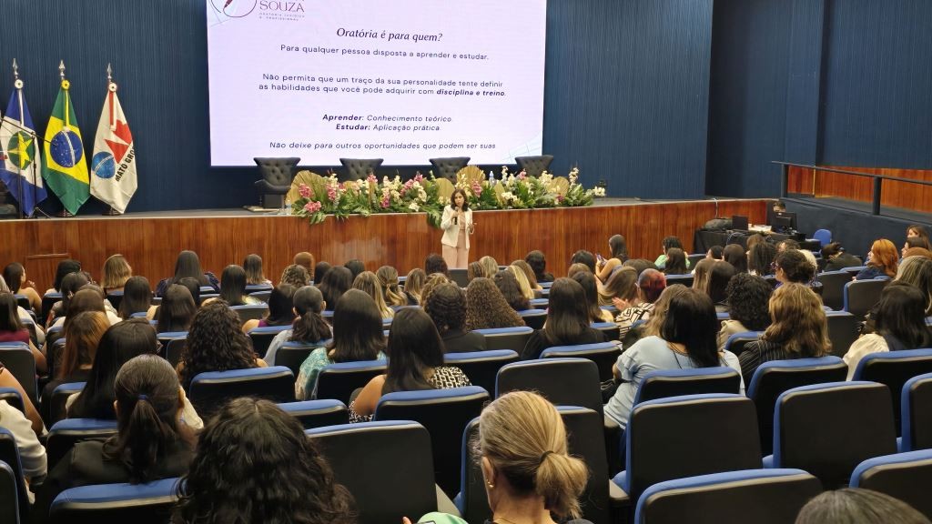 “As mulheres advogadas compareceram em busca de mais qualificação e tivemos uma noite muito produtiva, com aprendizado, networking e troca de experiências. Nossa avaliação é extremamente positiva com o interesse e envolvimento de todas neste evento tão enriquecedor”, analisou Jamille Adamczyk, presidente da Escola Superior de Advocacia (ESA-MT), ao final do Workshop de Oratório Jurídica e Profissional, realizado na noite de sexta-feira (21), no auditório da Ordem dos Advogados do Brasil – Seccional Mato Grosso (OAB-MT), como parte da programação do Março Mulher. A presidente da OAB-MT, Gisela Cardoso, estava em Manaus para participar do Colégio dos Presidentes das Seccionais da OAB – Gestão 2025-2027, e foi representada pelo vice-presidente Giovane Santin, na abertura do evento.
