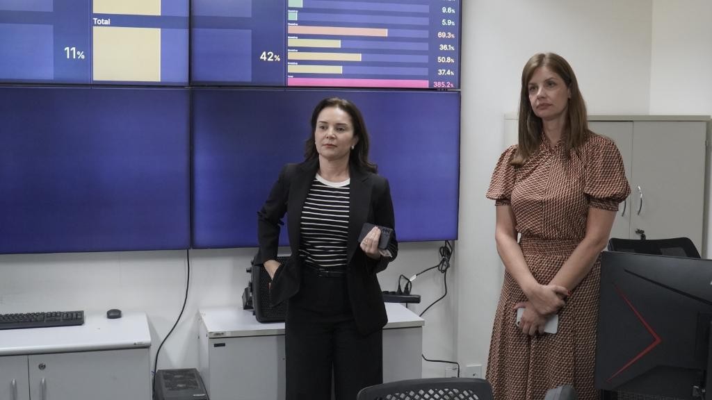 A delegada-geral, Daniela Maidel, junto com os diretores, recepcionaram a comitiva liderada pela diretora Camila Pintarelli. Os representantes do Ministério da Justiça e Segurança Pública, conheceu primeiramente alguns dos investimentos em tecnologia, que possibilitaram a criação e desenvolvimento do “Geia”, sistema único de funcionalidades da Polícia Civil.