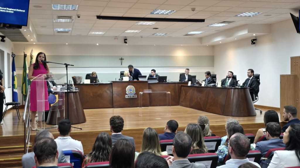 A presidente da Ordem dos Advogados do Brasil – Seccional Mato Grosso (OAB-MT), Gisela Cardoso, participou, na tarde desta segunda-feira (17) da Sessão Solene de posse do novo juiz membro do Tribunal Regional Eleitoral (TRE-MT), Jean Garcia de Freitas Bezerra. “A sua chegada, não é apenas um marco individual, é o fortalecimento de um compromisso coletivo, um compromisso com a Justiça, com a transparência e com o aperfeiçoamento contínuo do sistema eleitoral. Cada integrante deste Tribunal carrega consigo a responsabilidade de garantir que a vontade popular seja respeitada, com rigor, serenidade e coragem”, pontuou Gisela, em seu discurso. Em uma solenidade repleta de emoção, com a presença de familiares e amigos do empossado, todos que fizeram uso da palavra falaram sobre a importância das atividades dos membros do TRE-MT e destacaram a história e a conduta profissional do juiz Jean Bezerra.