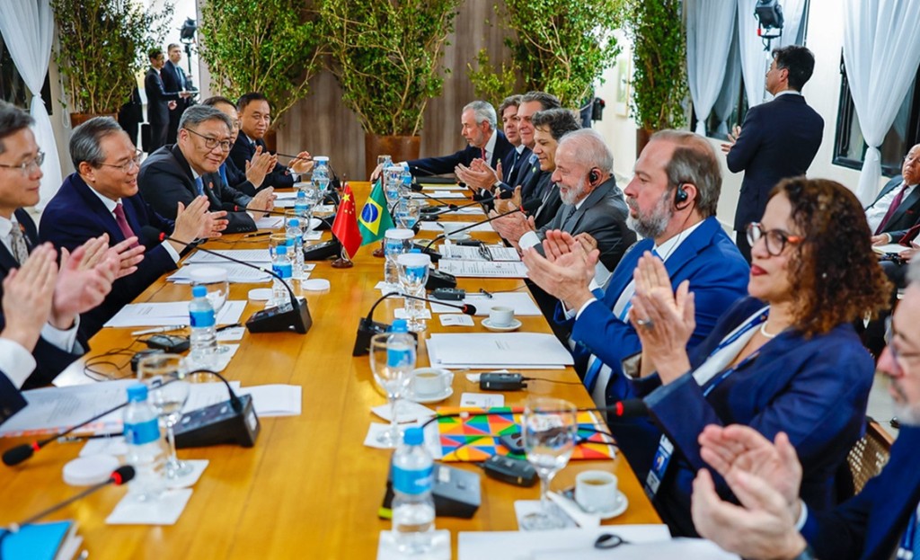 Na véspera da Cúpula de Chefes de Estado do BRICS, o presidente Luiz Inácio Lula da Silva se reuniu, neste sábado (5), com o primeiro-ministro da República Popular da China, Li Qiang. O encontro bilateral contou também com a participação do ministro da Agricultura e Pecuária, Carlos Fávaro.