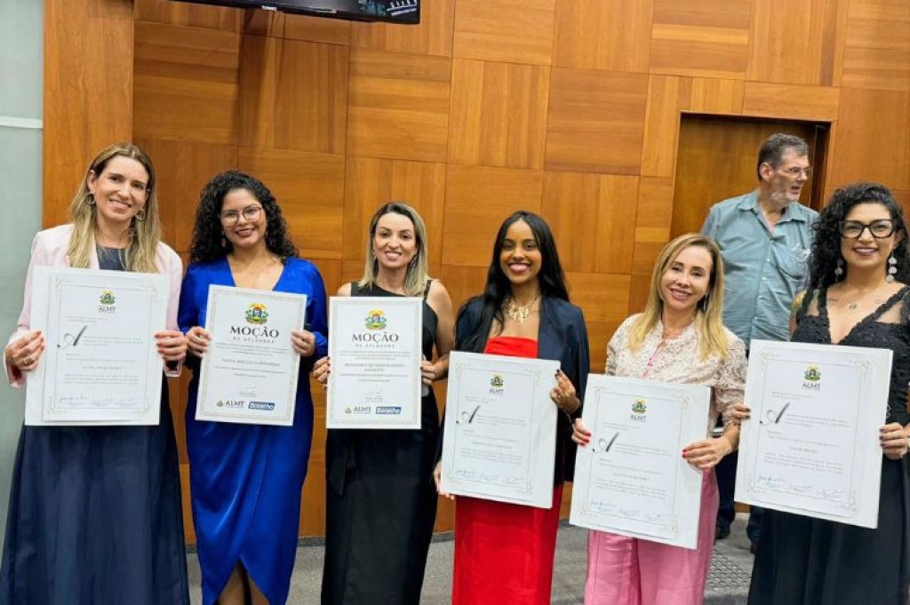 A promotora de Justiça Claire Vogel Dutra e integrantes de sua equipe técnica foram homenageadas na noite de segunda-feira (01/12) pela Assembleia Legislativa de Mato Grosso, durante sessão especial proposta pelo deputado Eduardo Botelho (União Brasil). A cerimônia concedeu Títulos de Cidadão Mato-grossense, Comendas, Moções de Aplauso e Moções de Louvor a dezenas de personalidades que contribuem para o desenvolvimento do Estado em diversas áreas.Claire Vogel Dutra recebeu o Título de Cidadã Mato-grossense, assim como três servidoras do Espaço Caliandra. Outras três profissionais do Núcleo das Promotorias e do gabinete da promotora foram reconhecidas com Moções de Aplauso pelos serviços prestados no enfrentamento da violência doméstica e familiar.Natural de Porto União (SC), Claire atua há 20 anos como promotora de Justiça em Mato Grosso, onde casou-se e nasceram seus três filhos. Ela destacou que a homenagem representa o reconhecimento de um trabalho dedicado ao estado que a acolheu. “É muito importante receber essa honraria. Ter o reconhecimento da Assembleia Legislativa pelo trabalho em prol das mulheres mato-grossenses é extremamente gratificante”, afirmou.A promotora ressaltou ainda o papel de Mato Grosso em sua trajetória profissional, especialmente na atuação voltada ao combate à violência doméstica e de gênero. “O Espaço Caliandra, com sua equipe multiprofissional, e o Observatório Caliandra, nosso portal de dados sobre feminicídios, representam esse compromisso. Tenho ao meu lado uma equipe maravilhosa, que também está sendo reconhecida nesta cerimônia pelo esforço e dedicação”, disse.Também receberam título de cidadã mato-grossense, a psicóloga do Espaço Caliandra, Vastir Maciel, natural de Taipu (RN), assistente social Itana Lua Silva Santana, natural de Salvador (BA), a escrivã de polícia cedida ao MPMT, Luciene Oliveira, natural de Goiás (GO).Já com Moção de Aplauso foram agraciadas a oficial de gabinete, Rosimar Caetano Marino Moretti, natural de Diamantino/MT, a assistente ministerial Maisa Magda Fernandes, natural de Sorriso/MT e a assistente jurídica, Ana Paula Sampaio Gomes, natural de Cuiabá/MT.Representando a equipe técnica, a psicóloga Vastir Maciel afirmou que sempre desejou tornar-se mato-grossense por meio da honraria da Assembleia. Ela destacou que o trabalho de acolhimento às mulheres vítimas de violência doméstica tem grande importância pessoal e profissional. “Poder ajudar essas mulheres e ainda ser reconhecida por isso é muito gratificante”, declarou.