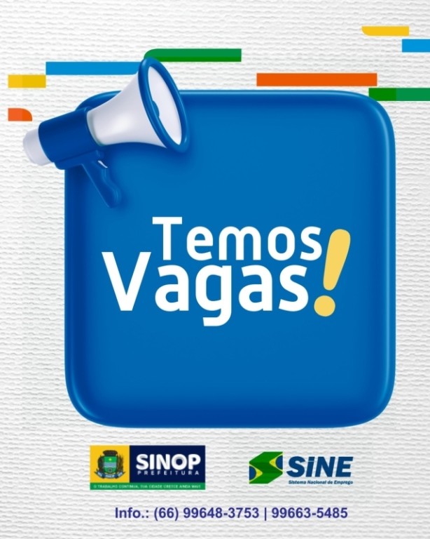 A Prefeitura de Sinop, por meio do Sistema Nacional de Emprego (Sine), anuncia nesta quinta-feira (18) a abertura de 402 vagas de trabalho em diferentes setores da economia local. As oportunidades contemplam desde funções operacionais até cargos técnicos e administrativos, reforçando o papel da cidade como polo de geração de emprego e renda no Norte de Mato Grosso.