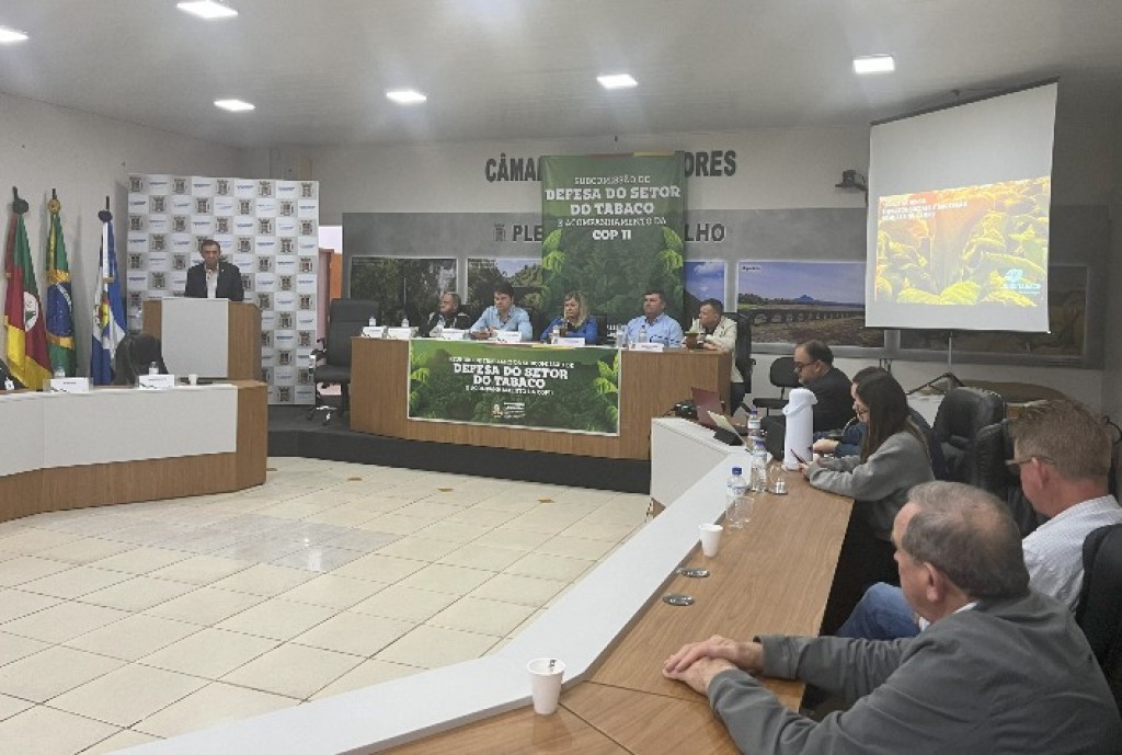 Durante reunião da Subcomissão de Defesa do Setor do Tabaco e Acompanhamento da COP 11, realizada nesta sexta-feira (26) em Candelária (RS), dados apresentados reforçaram a importância da cadeia produtiva do tabaco para a sucessão familiar no campo e para a geração de renda. O encontro foi liderado pelo deputado estadual Marcus Vinicius e contou com a presença de lideranças políticas, produtores e representantes do setor.